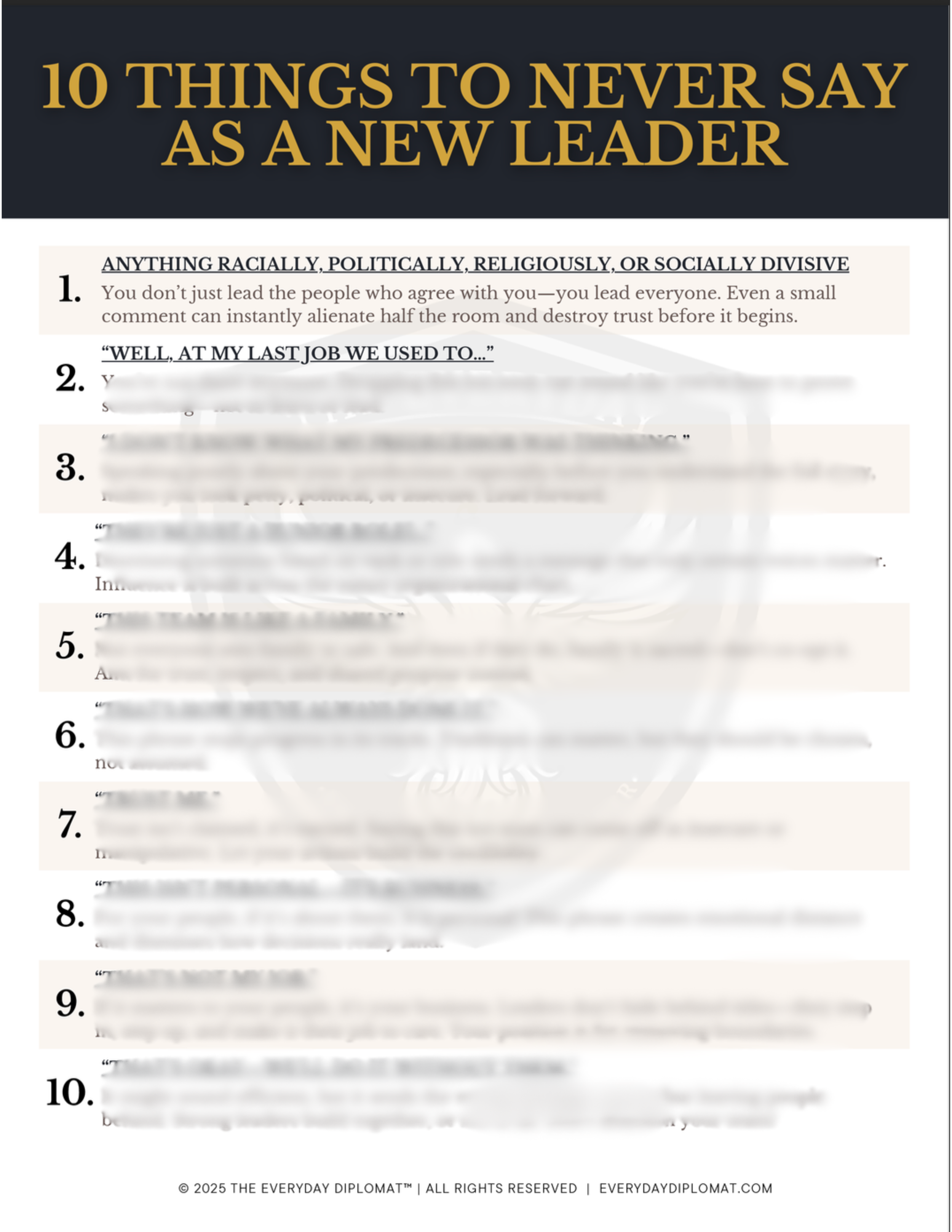 The Diplomat’s Dispatch is our bi-weekly newsletter packed with leadership insights, behind-the-scenes lessons, and practical tools to help you grow, whether you're leading now or preparing for what’s next.